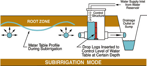 ![]() Schematic of weir-type hydraulic control structure used to regulate water table depth in subirrigated fields. (Graphic by Leslie Zucker, Ohio State University Extension) Background