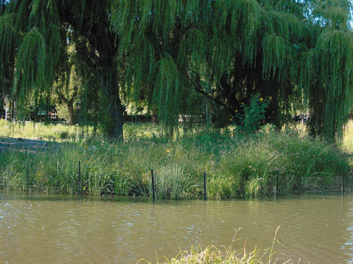 The Chicago Park District performed the tree and stump removal operations with District Forestry staff. All trees from the island were removed except the two Willows. Small stumps were pulled, larger ones were ground, and all were treated with glysophate herbicide. The tree removals created an open, sunny area where native prairie and savanna plants could flourish. Conservation Land Stewardship (CLS), a sister company of CDF, was responsible for native seeding and planting. Almost 100 species of plants were installed around the lagoon. Upland buffer areas were seeded with a diverse mix of native plant species and cover crop of annual rye. This area was also plugged with 2.5 potted plants such as Purple Coneflower, New England Aster and New Jersey Tea. Aquatic areas were plugged on 8 to 12 centers with species such as Arrowhead and Bullrush. New shorelines areas were plugged with species such as Milkweed, Cardinal Lobelia and Sweet Flag. Four Bur Oak trees were planted along the northeast savanna area, and it was plugged on 18 centers with plants such as Columbine and Wild Onion. A three-foot high plant protection fence was installed around the 800-foot outer perimeter of the restoration site to protect these new plantings from foot traffic. On June 5, 2000, Indian Boundarys $125,000 facelift was complete. General Maintenance