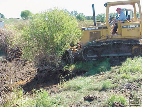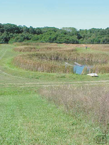 As the bulldozer operator cleared the dirt from the sides of the tree, it was observed that the tree roots grew similarly to the cattail roots. They grew down to the liner, then turned and traveled along the surface of the liner. Main roots were 3-5 feet long, with some smaller roots up to 7 feet from the trunk. When the dozer pushed the tree, it slid down the liner to the bottom of the pond, leaving the liner intact. No damage was found from roots penetrating the liner. In the center of each pond was an inlet/outlet structure. This concrete slab was approximately 2.5 x 2.5 feet, with the top level with the liner sub grade. The liner was placed over the concrete, sealed with mastic, and fastened to the concrete using 2x4 redwood batten strips and concrete nails. This structure and the batten appeared to perform well over the thirty years as indicated by no discoloration of the soil color under the liner and around the structure. To learn more about the experimental ponds and research opportunities available, visit the Michigan State Univeristy web site for the W.K. Kellogg Biological Station at www.kbs.msu.edu/. L&W For more information, contact Fred P. Rohe, Environmental Protection Inc., 9939 US-131 South, Mancelona, MI 49659, (800)OK-LINER, fax (231)587-8020, www.geomembrane.com, pvcliner@geomembrane.com. |
