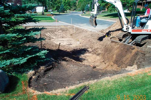 Leslie is often asked how the city obtained such a high level of participation for the study. She says one of the keys was having both an engineer to design the gardens and a landscape architect who met with individual homeowners and worked closely with them to come up with planting designs that fit not only their properties, but also their levels of commitment for long-term maintenance. “As soon as most of the homeowners met Fred,” says Leslie, “and found out they essentially had a landscape architect at their disposal, they were like kids in a candy store!” She also credits personal service and attention to detail for the high participation rate. “What the homeowners really cared most about was having a beautifully designed garden to enhance their property, so aesthetics were primary to them,” she says. “Runoff treatment was secondary, for the most part. Also, we spent a lot of time meeting with the homeowners trying to educate them about runoff and water quality and why this study was important.” According to Fred, a frequent reason that rainwater gardens don’t succeed with homeowners is that, if not thoughtfully planned, the gardens can look weedy and uncontrolled. That’s why his designs incorporated clean edges, stone retaining walls, and flowers and shrubs that are colorful, functional, and prone to stay confined to a garden. To best ensure not only the gardens’ visual appeal but their effectiveness at filtering stormwater, Fred and Kurt amended the upper layers of soil with a generous amount of compost, which was needed to both support the selected plantings and provide a high degree of drainage to the sandy layer of soil underneath. Another aspect of the project that contributed to technical success was careful site surveying. The neighborhood’s topography, landscaping features, and utility lines were all factored into garden design. And the tremendous amount of construction oversight, which Leslie concedes may not be feasible in some cases, allowed the gardens to be constructed exactly as planned. In addition to the necessity for what Kurt calls “precision excavating” within the utility grid in each yard, there was little room for error in elevations, because the gardens wouldn’t function as designed if established at too high or too low a ground level. Leslie says a contractor like Mike Tix, who pays close attention to detail, is extremely important, as is having earth grades and soil compaction checked regularly during construction. Since the project began, the Dakota County Soil and Water Conservation District has conducted home-runoff audits on each lot in the study neighborhood to provide homeowners with information on ways to further reduce runoff from their properties, such as redirecting downspouts, installing rain barrels to capture roof runoff, adding gutters in strategic locations, and aerating the lawn to enhance rainwater infiltration. For more information, contact Barr Engineering Company, 4700 W. 77th St., Suite 200, Minneapolis, MN 55435, (952)832-2600 or (800)632-BARR or Fax (952)832-2601. |