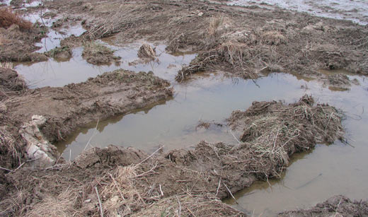 The early winter landscape revealed the mix of water-filled ruts, wetlands plants and the beginnings of forestation at the site.